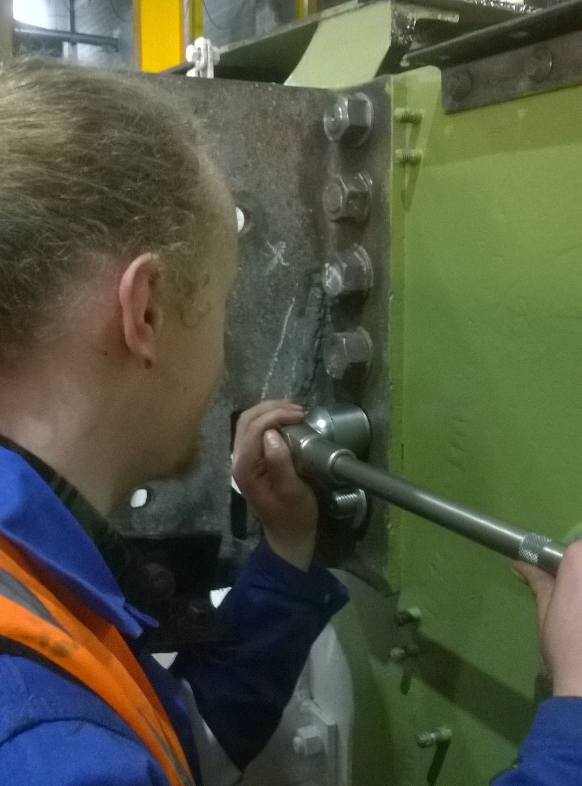 This week Malcolm Bateman used the mag-drill with machine reamers and a number of holes were finished ready for new rivets. We prefer to use an adjustable reamer as it removes less material than having to increase a hole size up to a fixed size reamer. The worn fitted bolts that secured the frame stretcher that holds the vacuum lock were replaced this week. New bolts were finish-machined and have now been fitted.