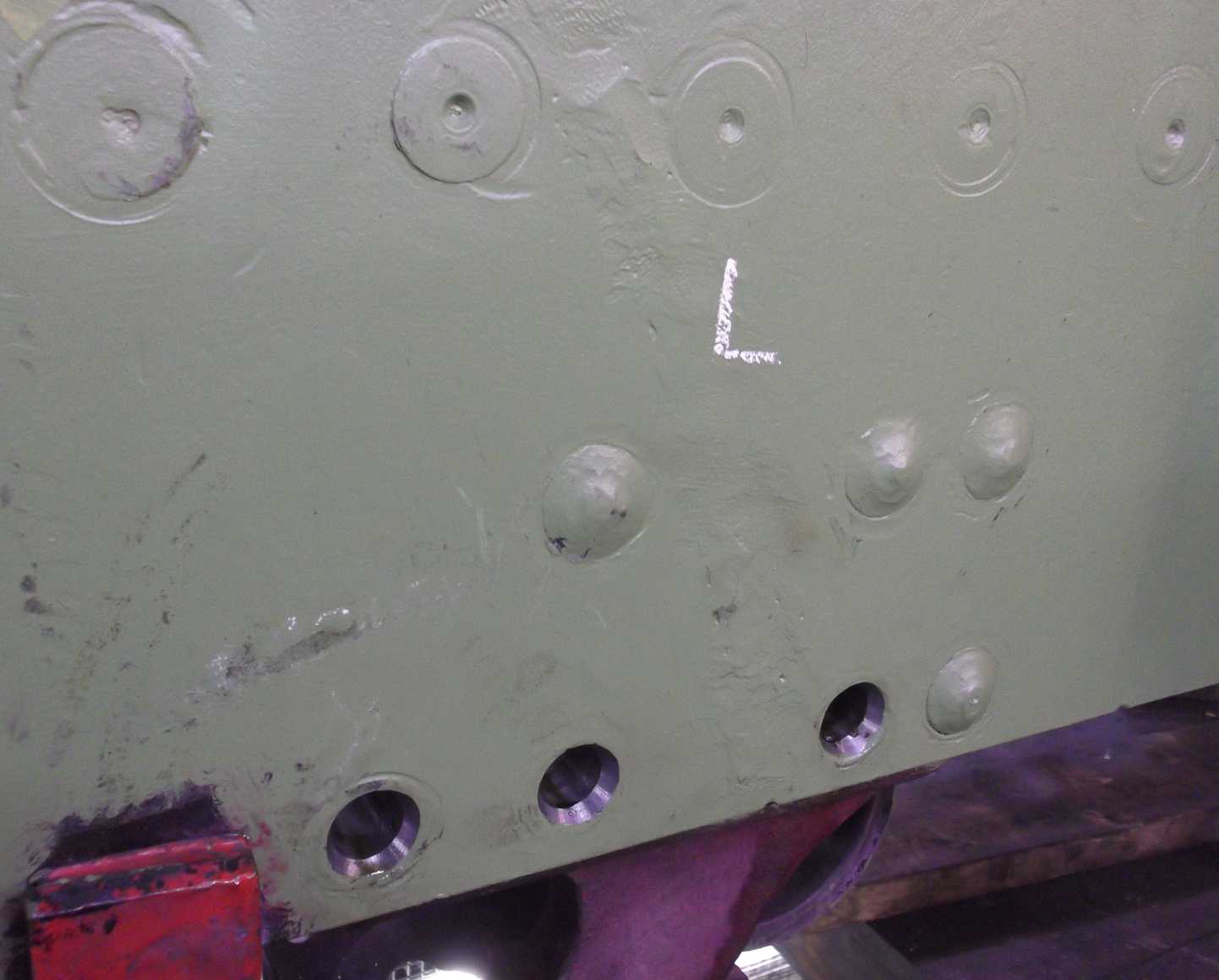 Work resumed at the dragbox this week. It took weeks of effort to manually ream out the dragbox holes but the uneven surface around the holes is unsuitable for tightening a nut onto when we fit new bolts. It was decided that the holes needed spotfacing. This involves cutting a flat surface around the bolt holes with a special cutter.