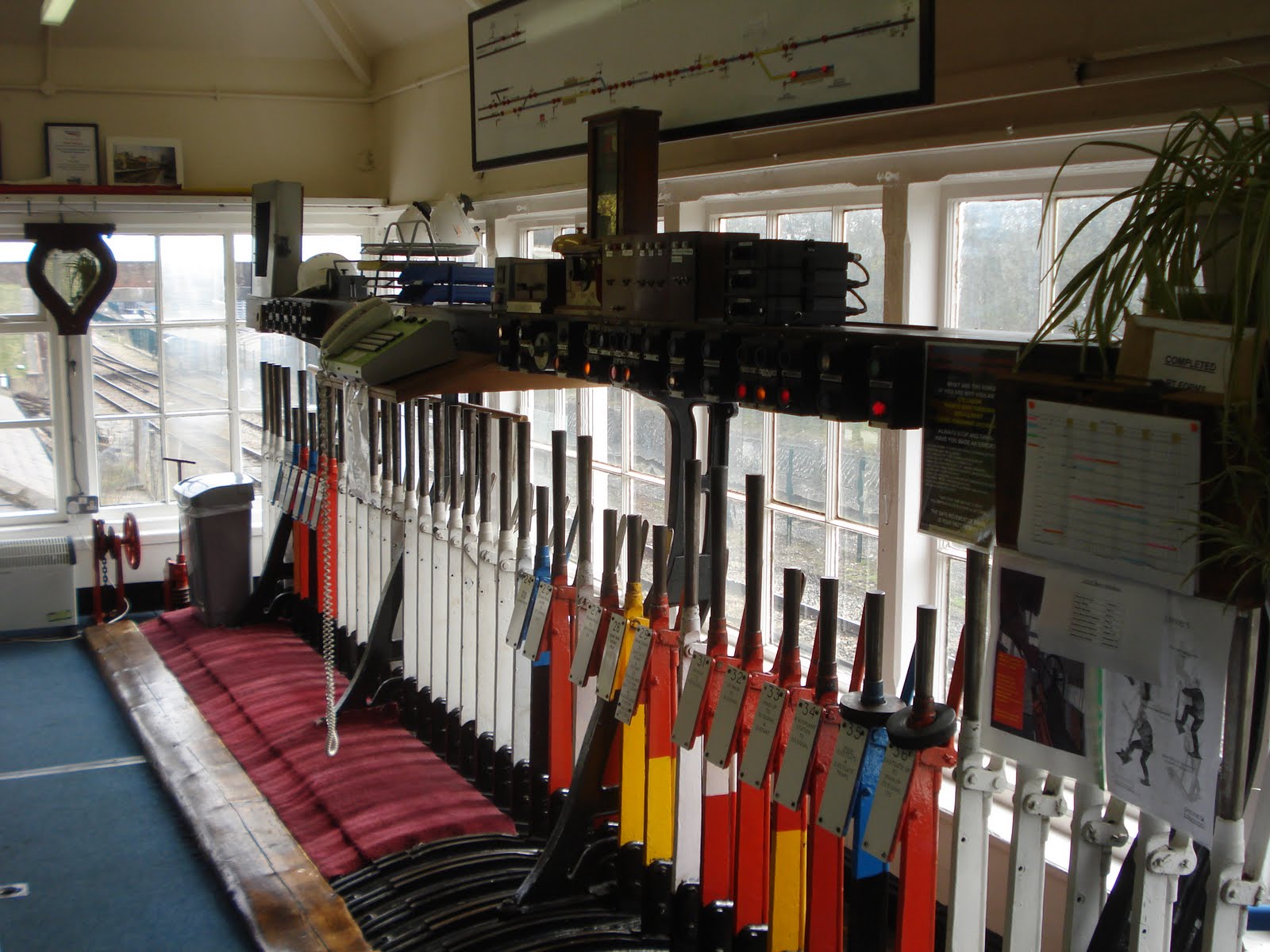 Apologies for the lack of updates recently, we had a week in Wales and this week has gone into meltdown – there will be a much larger update soon! However, I couldn’t let today pass. We have over the next two weeks two Peppercorn designed locos visiting at Shildon and the first arrived today, NELPG’s K1 No. 62005, known as “Lord of the Isles”. It was due at 14.28, and an hour beforehand, Richard Pearson and I went to Shildon signal box to discuss the move on to our site. With the signaller’s permission, I took this picture to share with you of the manual box, which controls the line to Heighington and Bishop Auckland. Please note, although it is an interesting and historic box, it is still operational, and casual visits are not permitted.