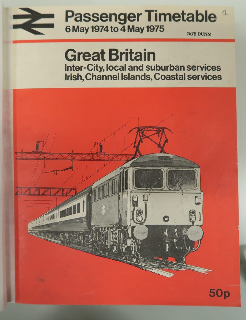 Interesting – I was not aware that the 1974-75 National Railway Timetable was the first national issue since the demise of Bradshaw. Because I had a copy of the final Bradshaw I purchased the last BR edition and therefore in effect have a ‘full set’ as well as a reprint of the 1839 Bradshaw.