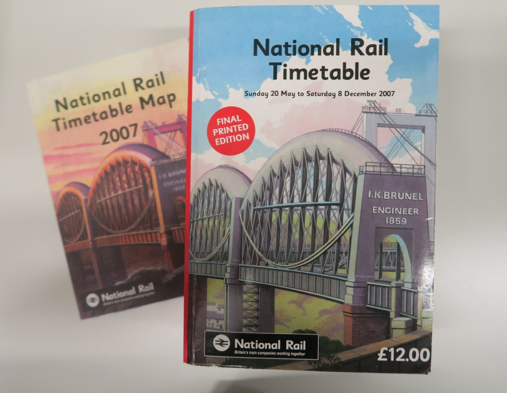 It was a shame when in 2008 German Rail (Deutsche Bahn) ceased printing the timetable book (Kursbuch) and I was happy when travelling to the UK to get printed versions. Now this era has come to an end as well. I will keep them safe beside my german, swiss, belgian, hungarian….timetables.