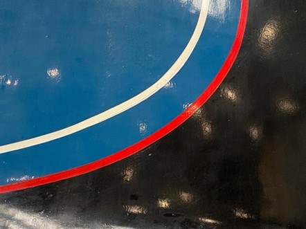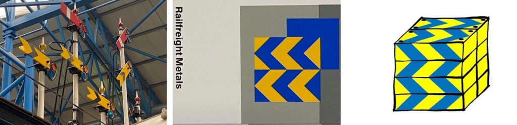However, at every step of the way any potential designs have to be balanced with the manufacturing process of the foam shapes and what is or isn’t possible. As such, more complicated designs have to be simplified so that they can a) be fabricated and b) stand up to vigorous play over a long period of time. A good example of this was a zig-zag design found on signals and on train liveries (see figure i). In the end it was was just too difficult to get the points of the arrows to line up and would have required a different construction approach which involved gluing rather than heat sealing making the work more prone to damage. In the end we are looking to compromise with a simplified design that upholds the same design and reference principles but will be compatible with the fabrication process.