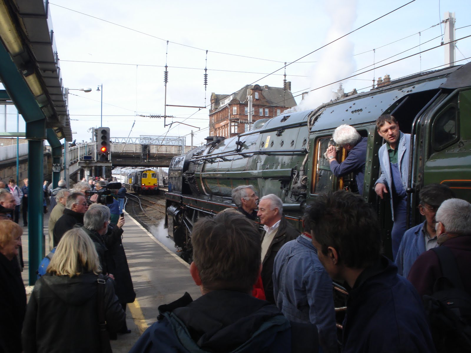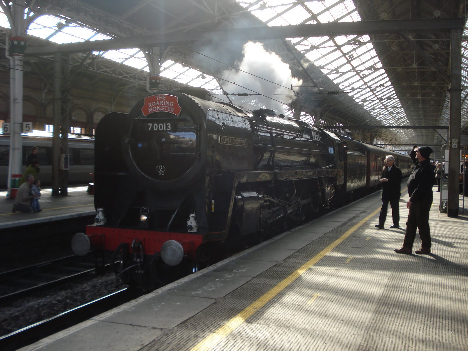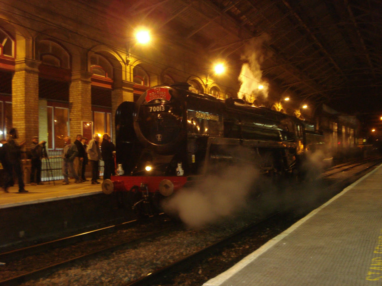 After a splendid southbound trip and then a cracking climb of Wilpshire bank up to Blackburn, we arrived at Preston again, where 70013 was taken off the train to return to Carnforth for servicing. Once again, as the engine pulled off, it was greeted with a round of applause from the platform!