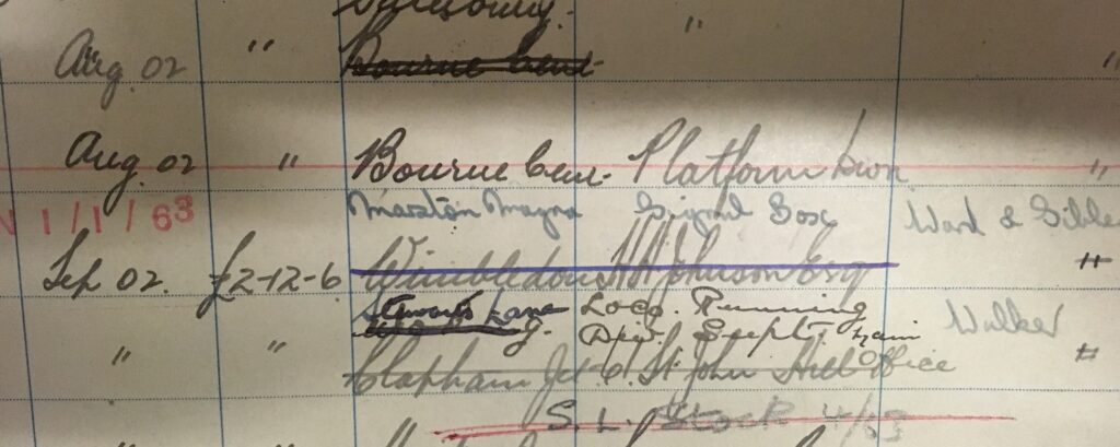 Good Morning Peter. I have a 12″ drop-clock manufactured by Darling & Wood (York) in 1888. I understand it was originally supplied to GER (location unknown). On the dial is the number 6991, which I believe is the LNER number allocated following the amalgamation in 1923. Having checked your on-line records it appears that the clock was situated in the ‘Motor Garage’ at Kings Cross. There are traces of another entry behind that one, which I am unable to read (bottom page 181 of Ledger 2). Can you thrown any light on that for me please (I’m hoping it may reveal its original location within GER ?). Your assistance is greatly appreciated.