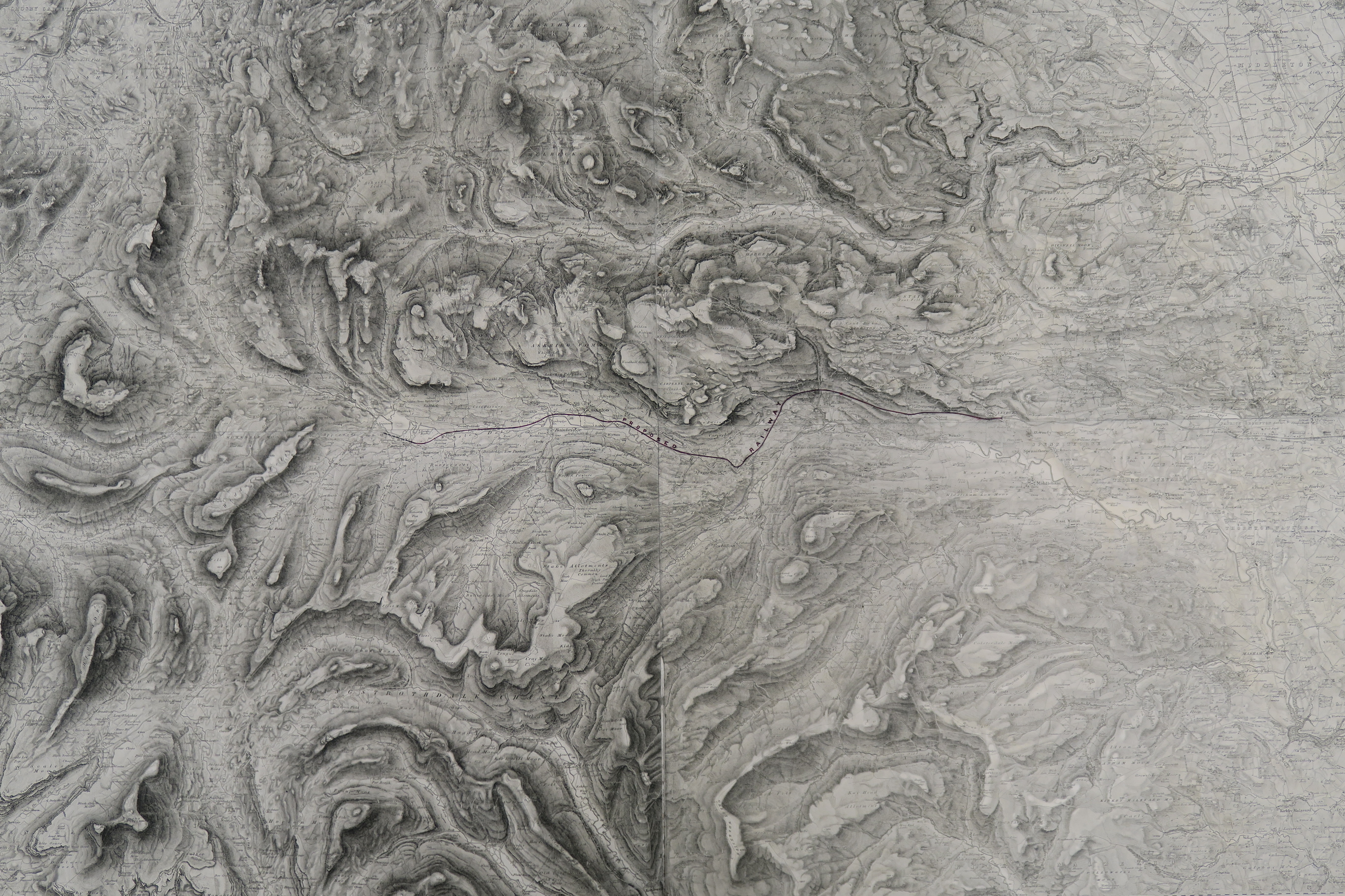 This map of the Yorkshire Dales shows an amazing level of detail and the shading used to delineate the topography of this hilly region almost makes the map seem to be in three dimensions. The proposed line, part of the North Eastern Railway, ran from Hawes. The scale of the terrain dwarfs the proposed railway line.